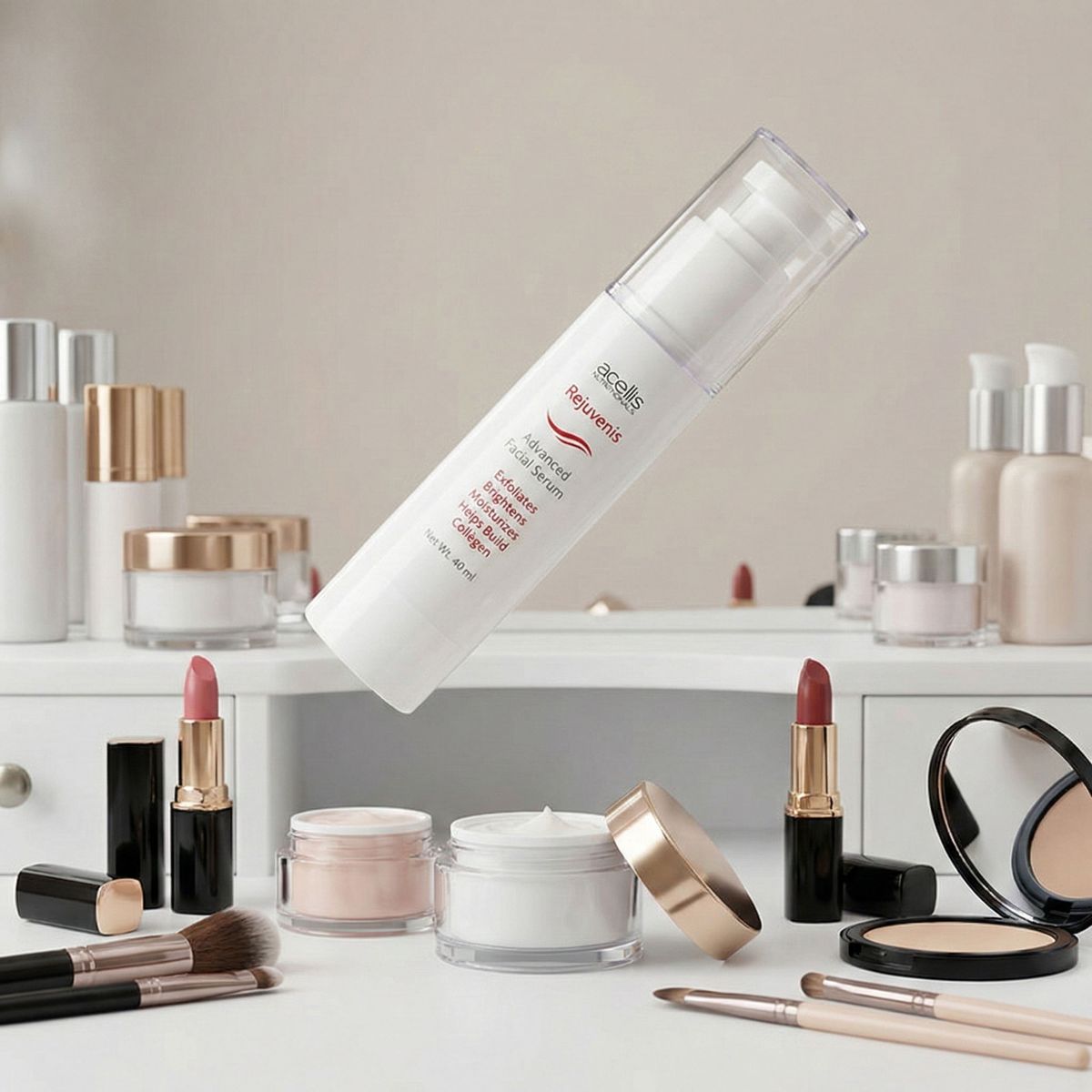 Exfoliation from using Rejuvenis removes dead skin cells which build up on the skin surface, revealing a fresher smoother skin underneath, This also stimulates the natural skin renewal process, encouraging new skin cells to the surface faster, improving skin texture, making your complexion brighter, more radiant and more youthful. Exfoliation will also help clear clogged pores and help reduce the occurrence of acne and blackheads. Removing old dead skin, also allows Rejuvenis moisturizing serum to penetrate for more effectiveness,